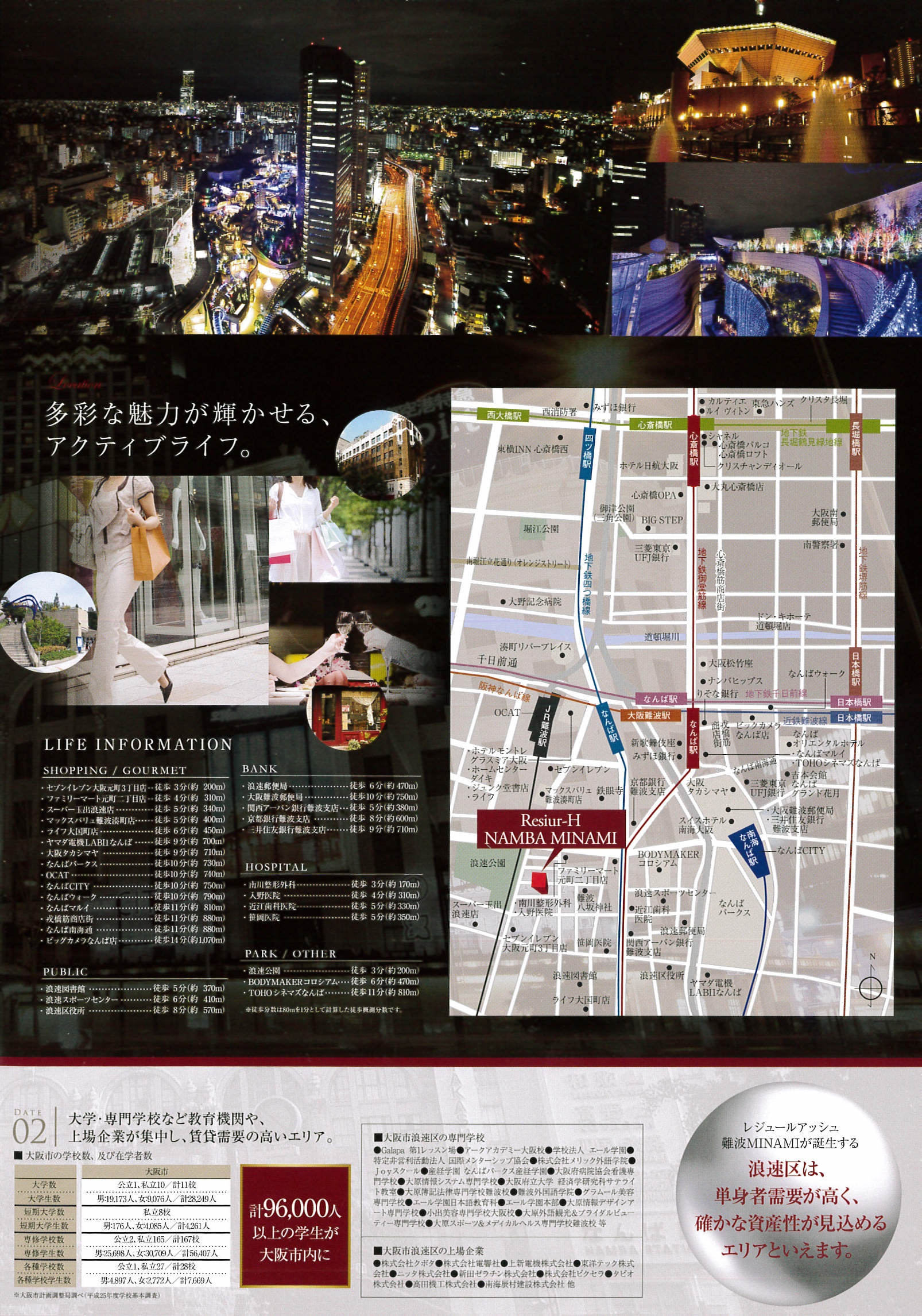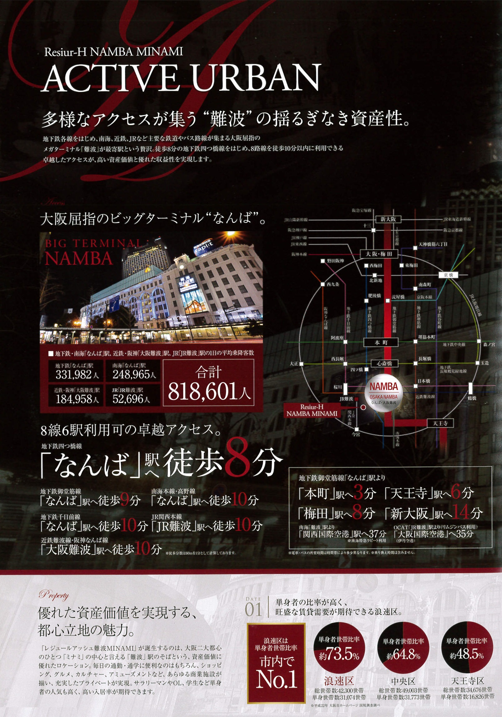 心斎橋・なんば・日本橋をはじめ、商業・ビジネス・観光が融合した関西屈指の人気エリア。