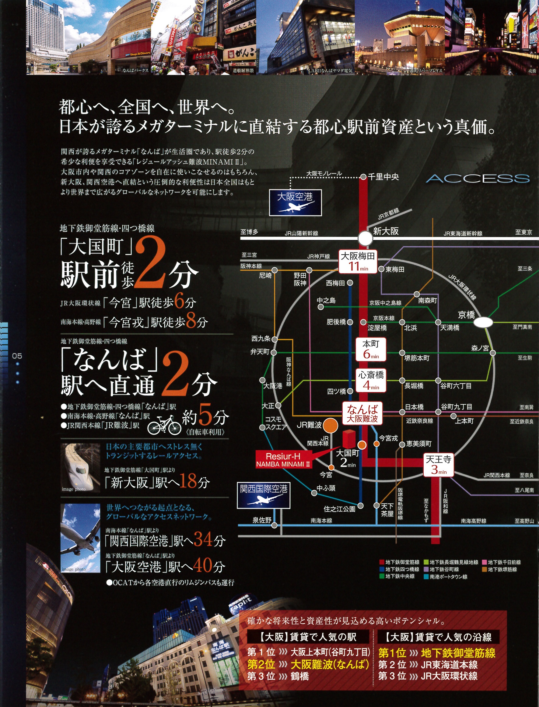 御堂筋線・四つ橋線「大国町」徒歩2分、JR・南海も利用可能な