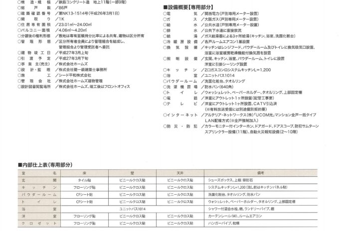 • 防災・消 設備:共同住宅用自動火災報知設備、消火器、連結送水管